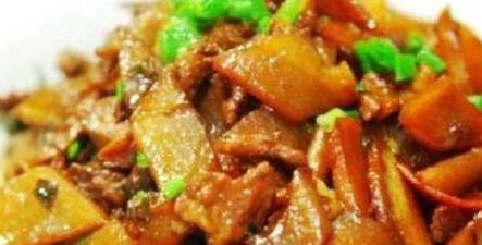 做法:1.将白萝卜、红萝卜洗净并去皮切块,葱洗净切段2.五花肉洗净切成小块,放入沸水中焯烫后捞出冲凉3.锅中加入适量沙拉油,将蒜仁、葱段爆香4.放入五花肉块,炒至肉块油亮并呈白色后,加入调味料炒至入味5.锅中加水,待水煮滚后,盖上锅盖焖煮约20分钟6.再放入红白萝卜块拌匀,续煮25分钟,熄火后焖10分钟即可