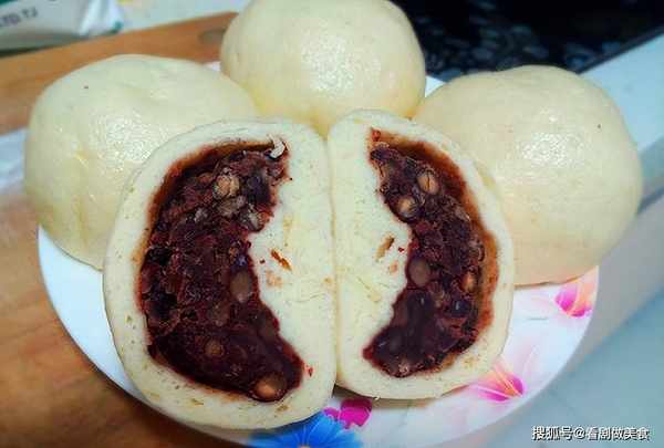 提示:擀面皮时,不要太薄,比饺子皮厚3~5倍即可。如果喜欢黏稠的豆沙,可以在馅料里多加水。