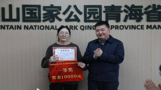 为一等奖获奖代表苏州工业园区翰林小学授奖(代领)。祁连山国家公园供图