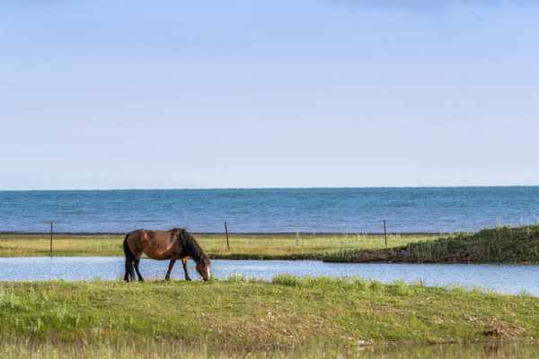 终于到达这心心念念的纯净之地,下车向入口走去,却感一阵强烈的压迫,好似将要水漫金山一般,无边无际的青海湖水天相接,而那相接的地方又比我们还高。