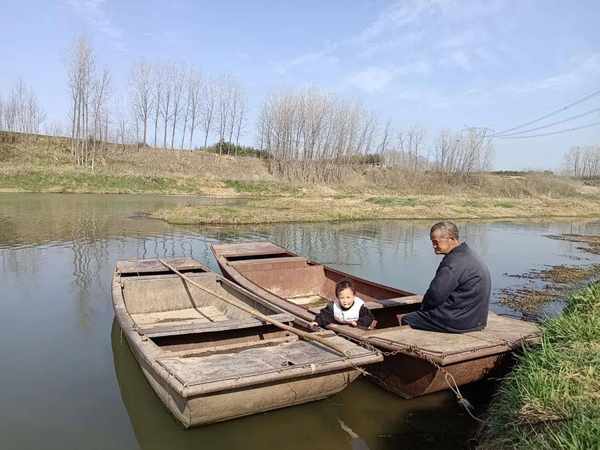 春风吹拂老虎沟两岸,小花小草都在展现着自己生命的精彩。我沿着村民指引的方向走去,看到老虎沟的淙淙流水注入了宽阔的溱头河。我掬一捧清水洗面,抬头看见不远处有一老一小坐在一只小渔舟上。我想,老虎沟也好,溱头河也好,也许千百年来没有大的改变,但人间却早已改天换地,在芸芸众生的心里,期望的永远是一个变字,那就是祈求日子变得越来越美好,越来越幸福。