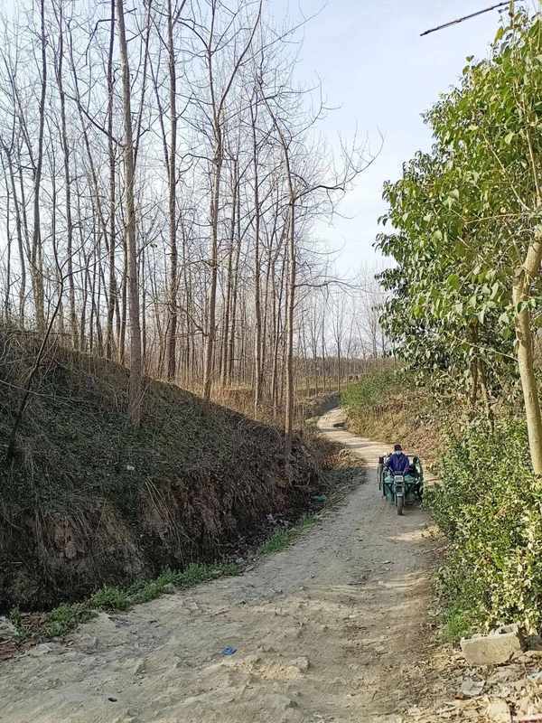 我正与张福庆老人聊着,迎面从老虎沟过来一个去东官庄赶集的骑三轮车的村民。张福庆老人打个招呼,那人停下,两人笑容满面地寒喧了一阵。言谈中才知,张福庆老人女儿在市环保局工作,儿子在县卫健委工作,儿女都让他去城里养老,但他执意要在老家守着那几亩地,不是为了那一点收入,而是为了一个念想,为了守着祖祖辈辈的归宿之地。