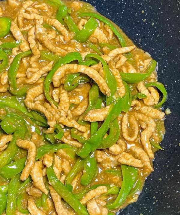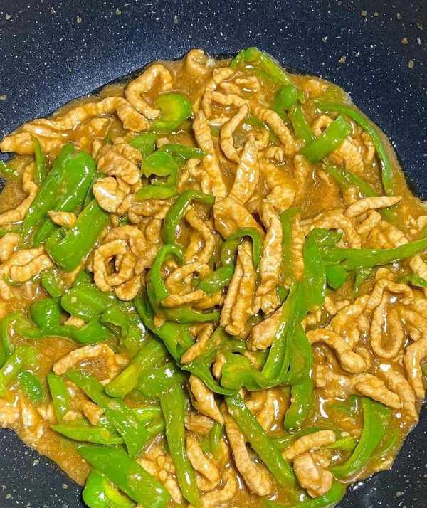 这道菜的味道很不错,青椒和猪肉的搭配,好吃又营养,肉条嫩,青椒条酥脆,配上酱汁更开胃。