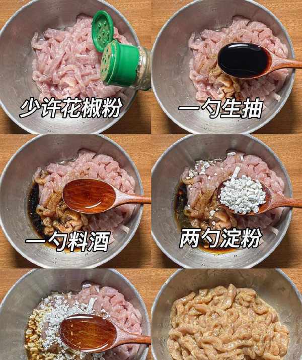 然后我们开始做饭。先在锅里烧热油,放入腌好的肉丝炒熟,备用。然后锅内留油,加入蒜末爆香,再加入青椒丝炒软,最后加入炸好的肉丝,倒入酱汁翻炒至收干。