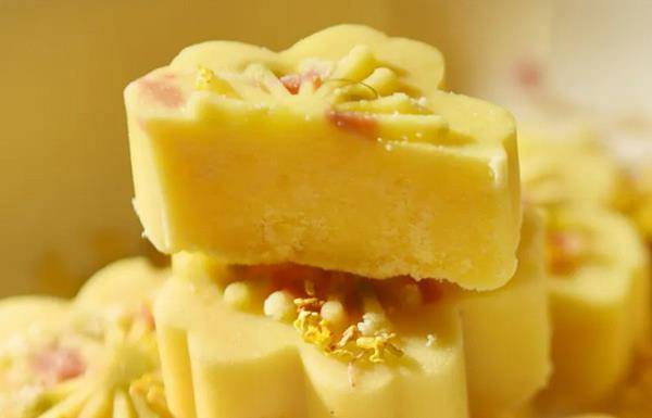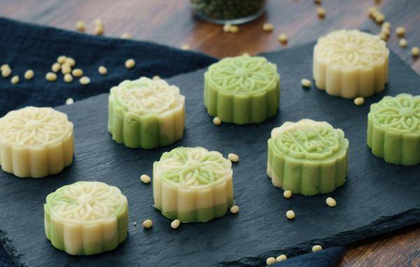 绿豆是一种常见的粗粮,也是非常好的解暑食物。绿豆浸泡后,去掉外面深绿色的皮,里面是淡黄色的绿豆颗粒。煮熟后捣成豆沙,加入适量桂花蜜。用模具制作完成的桂花绿豆糕。它看起来非常可爱和开胃。