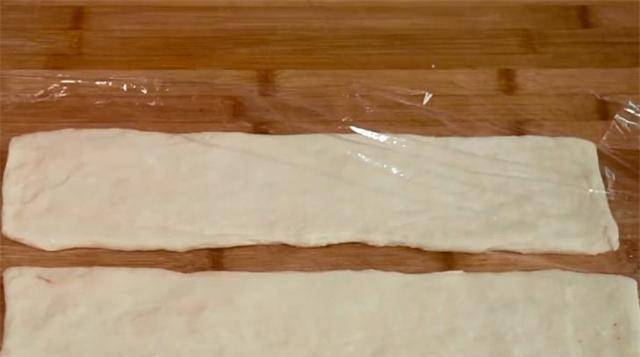 7、时间到了,撕掉保鲜膜,将面团切成2厘米宽的块。