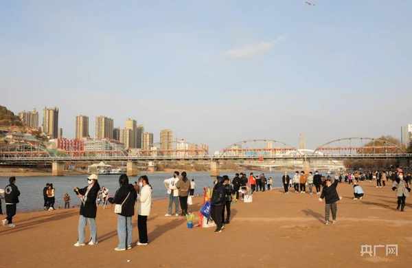 兰州市民在黄河岸边感受春天的气息(央广网记者 李红军 摄)