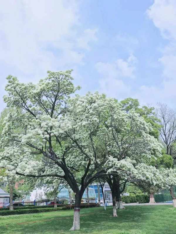 步入聊城公园就好像闯入了油画世界,沿着林荫道一路深去,可以看到爬满紫藤花的花架长廊,在假山溪水潺潺的背后能寻到一颗名为“流苏”的树。