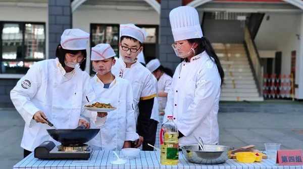 在活动现场,该校七年级20个班选出80名同学组成代表队,依次穿上厨师服,化身“小厨师”,从切菜、下锅、翻炒到摆盘上菜,纷纷使出看家本领。切菜声、炒菜声,声声入耳,蒸煮煎炒出的香味渐渐弥漫,油盐酱醋也调和出了劳动的乐趣。“参加这次厨艺大赛,丰富了我们的课余生活,增进了同学间的友谊,使我们在烹饪的过程中享受合作带来的乐趣,了解了中国博大精深的烹饪文化。”参赛学生赵依璇高兴地说。