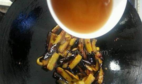 5.加调汁(冷水半碗,盐一勺,糖一勺,一勺酱油,一勺鸡精,四勺淀粉,勺子不要太大哦,具体根据自己茄子量来定)