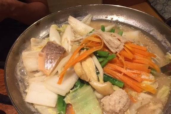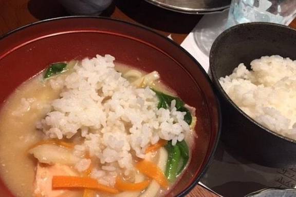 至于相扑锅(ちゃんこ锅),一般来说没有固定的食谱,但一定含有极具份量的蛋白质和碳水化合物。相扑锅里有鲑鱼、猪五花肉、鸡肉丸(つくね)、小白菜、红萝卜、金针菇、香菇和乌龙面等材料,用味噌汤全部一起小火慢炖。虽然把这么多食材一起炖煮,但尝起来味道绝不冲突,而非常和谐。鱼肉和其他肉类让汤头更加完整,青菜的清甜也平衡了丰富的味道。