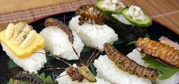 第二个,便是日本的昆虫寿司。日本人喜欢吃寿司,这点是众所皆知的。而日本人还喜欢将昆虫油炸一下,放在寿司上面食用。并且,这些昆虫都还保留了最原始的样子。对于小编这种非常害怕昆虫的来说,怕是这辈子都不敢去尝试了!