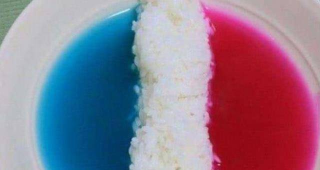 而日本人和我们中国人一样,喜欢吃米饭,还喜欢对米饭做出各种各样的造型。日本的这个魔幻米饭,是由咖喱做出来的,用了一些奇特的方式产生了红色与蓝色,中间用米饭隔开。虽然说看起来很新鲜,不过还真是有一些黑暗!