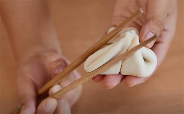6.拿双筷子把这三个边夹紧,这样的话就不会漏糖了。