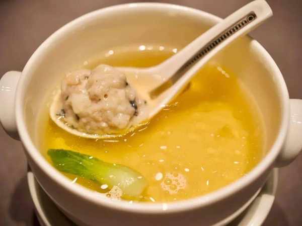 打底是 老鸡汤,加入除了石耳石鸡外的 另一“石”: 霍山石斛, 清代就有记载的贡品(又被称为寸金,药用价值极高),为汤底提供一些略带青草感的清新香气,正好与肉丸的荤鲜中和。