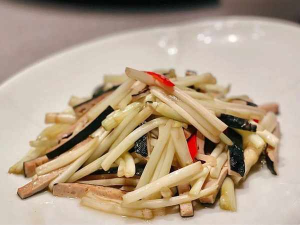 有些食材好到能单独出道:比如岳西茭白,直接作为冷盘生吃,很有日料店刺身的追求。