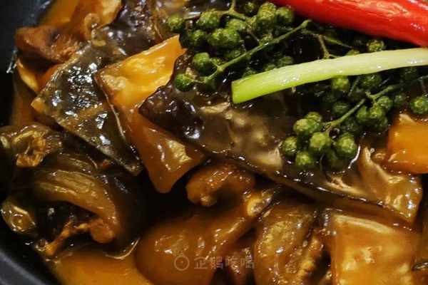 加入了花椒,并且通过煨煲收汁,算是川菜元素+徽菜技法, 让花椒香气深入每寸裙边胶原蛋白,比普通的红烧甲鱼解腻不少,充分提现徽菜对”鲜的层次+入味“的追求。