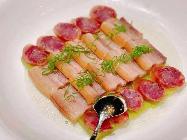 吃到一盘标准的刀板香,搭配农家腊肠,多添一重肥鲜,下酒是一把好手。