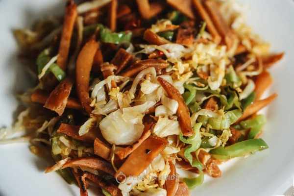 内里组织很特别:抿化在舌尖绵软,散发着犹如奶酪般的质地和发酵咸鲜,再配上当地产的辣椒酱,实在是过口难忘。