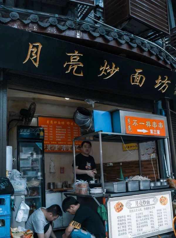 从桥梓口到洒金桥这片区域不光是游客闻名而来逛吃逛吃的地方,也因这周围遍布酒吧,所以这里开到凌晨的饭馆自然也是美食打卡的好地方。