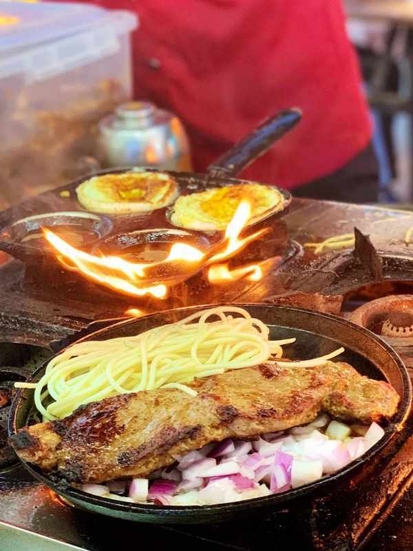 吃牛排不用去西餐厅,在红街夜市就能吃到,配上爆浆的流心蛋+诱人的意大利面,浓郁的黑胡椒汁,仪式感一分也没有少。