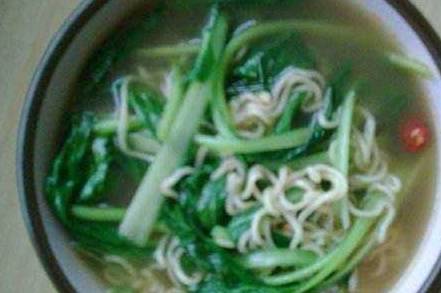 在吃泡面的时候加上几棵小青菜,既能让人觉得很美观,也增加了泡面的营养,最好选那种特别小一棵的青菜!