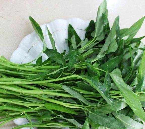 (4)空心菜准备好备用,生姜、大蒜末里加入少许开水烫一会,小面里直接加入姜蒜末有点抢味,所以加这个姜蒜水。