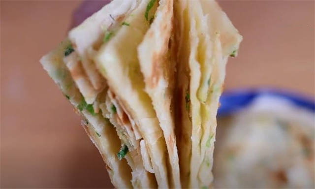 11.烙饼的时候用玉米面作为辅助,这样层次会更多,而且就算是细磨的玉米面,吃着也不会有粗糙的口感,今天的千层葱油饼教程就到这里了,你学会了吗?
