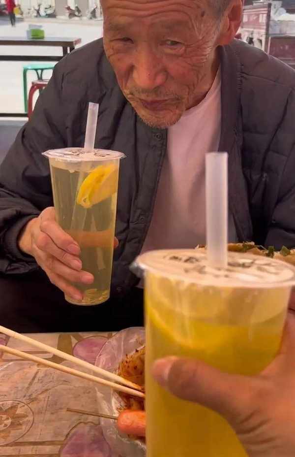 后来,女子便带着公公尝试各种“稀奇古怪”的东西:烧烤,奶茶,饮料,披萨,冰淇淋,螺蛳粉……