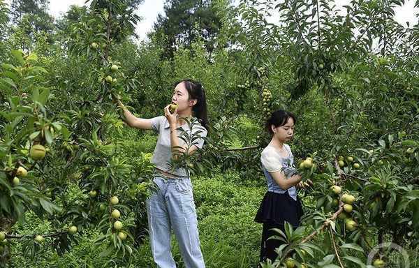 前来采摘李子的游客胡女士说,“这里的李子一个个红得发紫,甜得醉人。摘下一颗,大口咬下,嘎嘣脆!果肉脆嫩,果香浓郁,而且离核化渣,香甜适口,久吃不厌。味道非常好。”