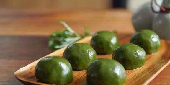 蒸好后,趁热在青团表面薄薄刷上一层油,保持青团的颜色和光泽,也防止它们互相粘连