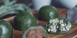 三种内馅儿的青团都包好后,放入蒸箱蒸十分钟
