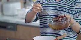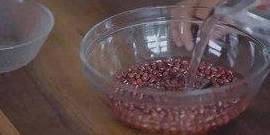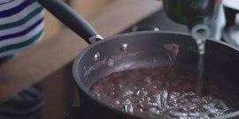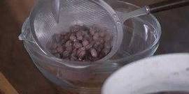 红豆软烂之后捞出,放在漏筛上用勺子挤压红豆过筛