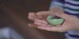 然后沿四个方向把面皮往上捏,捏初一个小碗的形状,放入一个豆沙馅
