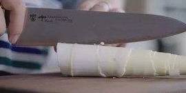 竹笋剥壳,切掉根部特别老的部分,纵向切两半