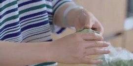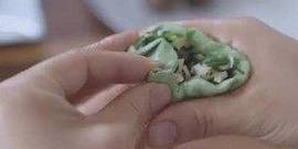最后再来包一个马兰头香干馅的,面团依旧是捏成小碗的形状
