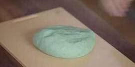 把面团搓成圆球,再按扁,然后用大拇指在中间按出一个窝
