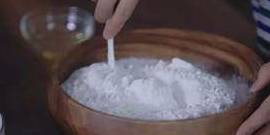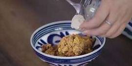 压蒜泥,加一小撮盐、香油、白胡椒、松子
