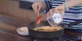平底锅加热,倒油,放入蛋黄,小火慢炒,炒出香味