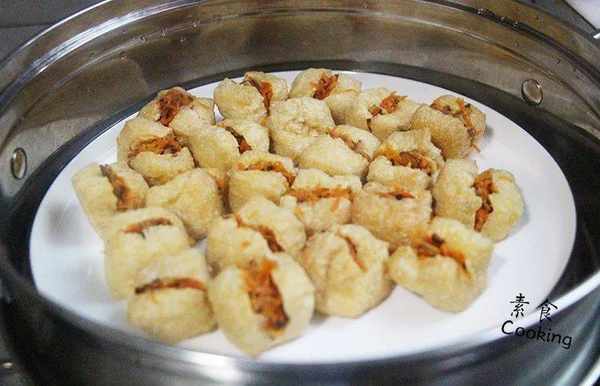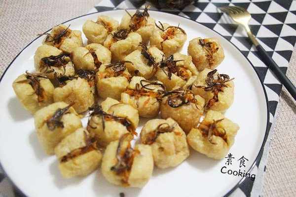 第三步:油豆腐切一个小口,塞入拌好的食材