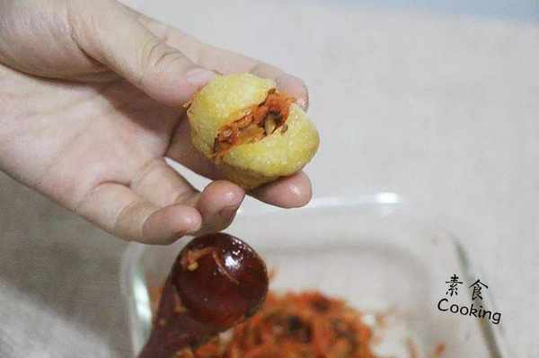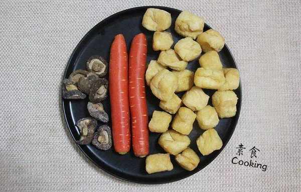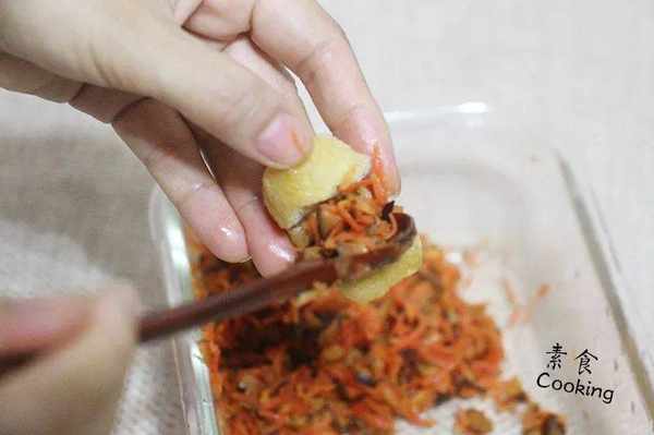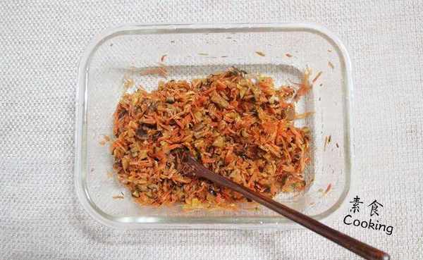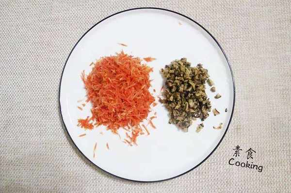 水果胡萝卜擦细丝,干香菇泡发后切小粒
