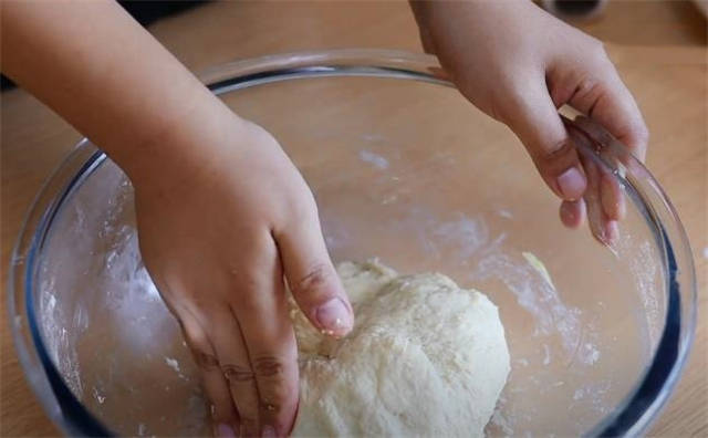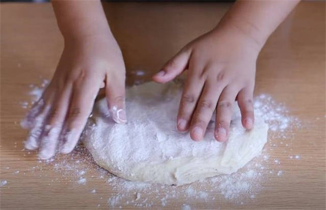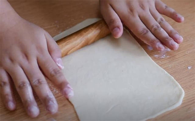 4.处理小面剂的时候直接在掌心搓圆,再用擀面杖擀成饼皮。