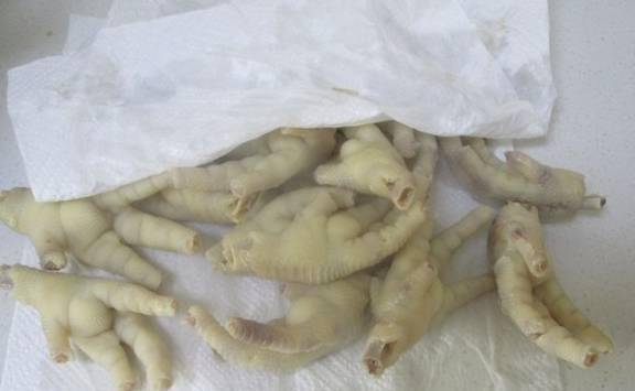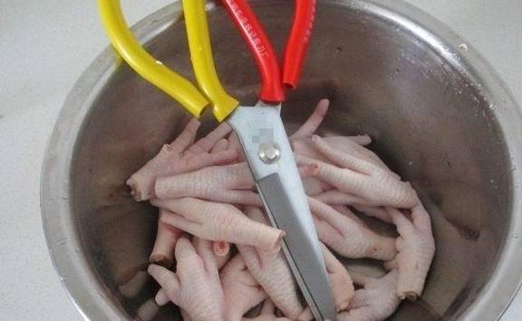 先用剪刀剪掉鸡的指甲,洗净