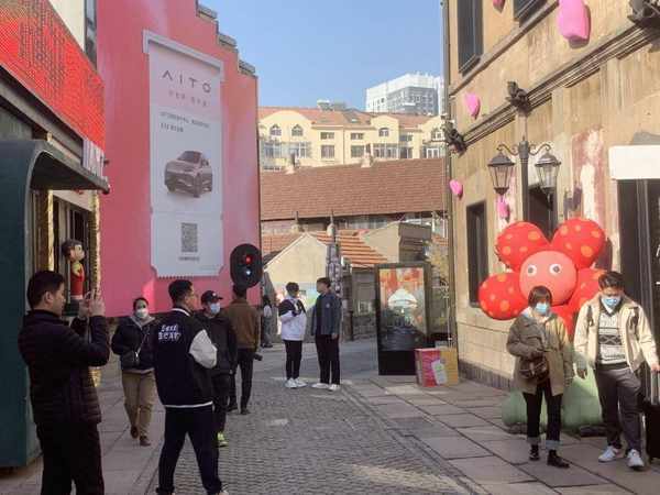 记者从银鱼巷步行走到了中山路与肥城路的十字路口,放眼望去,圣弥厄尔教堂前三三两两拍婚纱照的情侣,结伴而行的年轻人嬉戏打闹,也有老人慢慢悠悠地行走着。安娜别墅的外面围了一些正在“打卡”拍照的年轻人,院内有游客身着华丽的服饰拍婚纱照。