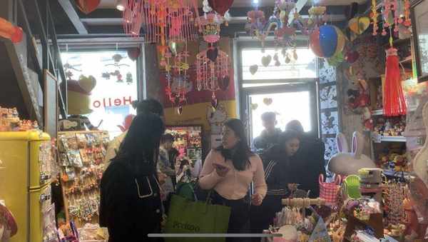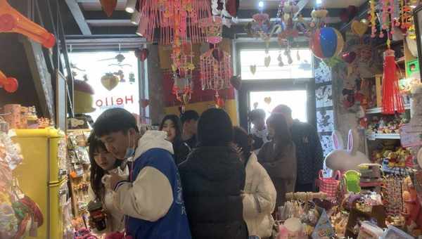 虽然是工作日,但是银鱼巷的各家店铺前都有游客在“打卡”,有的店铺前还有顾客在排队等待拍照。走进银鱼巷的“lulu玩具公社”,三五成群的小姑娘穿着十分洋气,化着精致的妆容,她们欣赏着店里的玩具并不时询问价格,lulu玩具公社的老板鹿鹿说:“包装底下有价格的标签,可以随便看看。”正说着,又有五六个年轻人推门而入,一波接一波的顾客在小店里购物,不算大的店里有十几个人停留购物是常态。