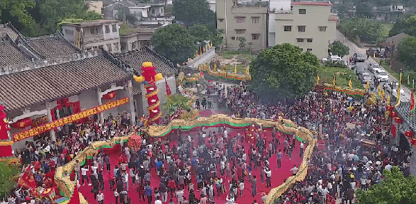热闹繁荣的商业街、拔地而起的高楼新屋与庙宇祖祠、圩市桥头,隔河相望,旧时代的情怀与新时代的发展,穿越历史洪流,在此融和。
