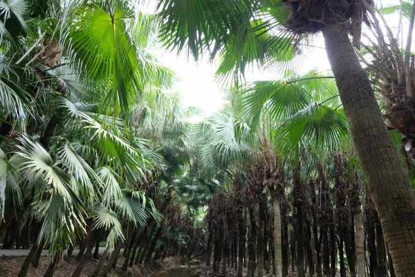 深入蒲葵林,林中曲径通幽、小河纵横,葵树千姿百态,或立或倾斜,别有一番趣志。