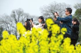 长沙市望城区茶亭镇的万亩油菜花竞相开放,市民们周末纷纷前来赏花踏青。图/通讯员肖克