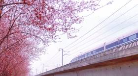 紫叶李花比樱花开的时间要早几日,它的花期只有十几天,不少游客趁着这最后几日的花期赶来打卡。记者注意到,路边的花树下一名女士正坐在一张小椅子上拍照,这个位置刚好可以将紫叶李花和旁边经过的列车同时收进画框。列车飞驰而过时,为她拍照的摄影师刘先生狂按快门,力求抓拍到一张最漂亮的照片。