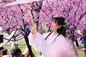 此时另一名女士匆匆赶来说:“我来晚了,脸上的妆都卡粉了。”她有点懊恼又掩饰不住脸上的兴奋。这名女士姓崔,正在拍照的女士和摄影师都是她的同事,他们三人在前一天晚上临时起意,打算来这里打卡拍照。崔女士住在雨花区,远道而来赴约。崔女士赶来后也加入了拍照,两个人手挽手,笑语盈盈地走在紫叶李花盛开的树下,旁边白色的高铁列车疾驰而过,刘先生的镜头里早已定格下这最美的春天。
